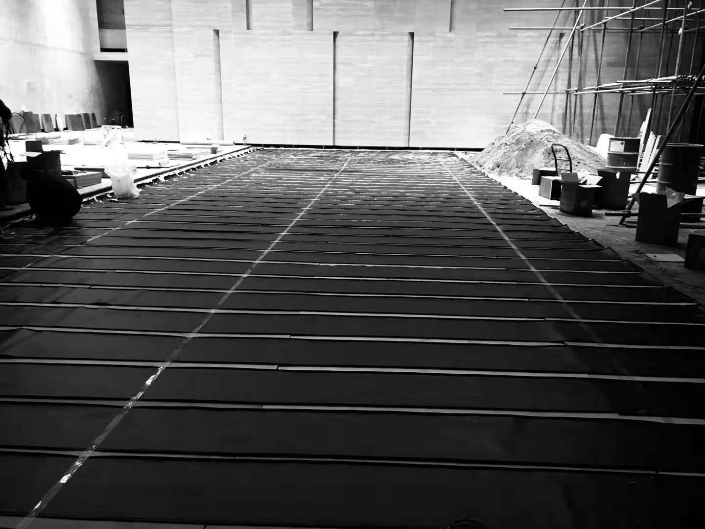 雙層防水石墨烯電熱膜直接鋪設兩公分厚大理石石材地面采暖案例