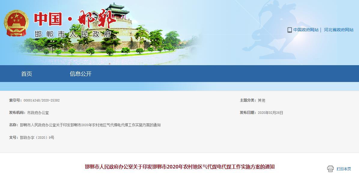 邯鄲市人民政府辦公室關(guān)于印發(fā)邯鄲市2020年農(nóng)村地區(qū)氣代煤電代煤工作實(shí)施方案的通知