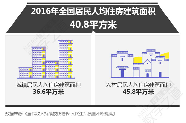 到2016年的時(shí)候,中國(guó)城鎮(zhèn)人均住房面積又上漲了一些,國(guó)家統(tǒng)計(jì)局在《居民收入持續(xù)較快增長(zhǎng),人民生活質(zhì)量不斷提高》的文章稱,2016年全國(guó)居民人均住房建筑面積為40.8平方米,其中城鎮(zhèn)36.6平方米。